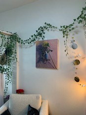 壁に穴を開けられるようでしたら画鋲や鋲付きフックで簡単に引っかけられます。裏側に紐を金具などでつけて鋲付きのフックに引っ掛けるのという事も可能です。